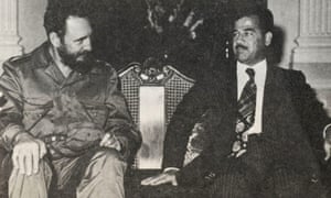 ‘We cannot afford to argue the toss about dictators, parse the difference between the really bad ones and the less bad ones who looked cute in a beret.’ Fidel Castro poses with Saddam Hussein. Photograph: Getty Images