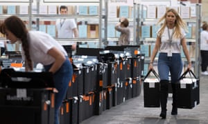 Ballot boxes arrive at a count centre in north London. Photograph: Justin Tallis/AFP/Getty Images