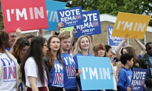 Supporters of the Remain campaign. Photograph: Yui Mok/PA