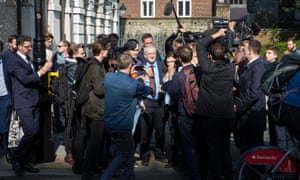 Jeremy Corbyn is pursued by journalists as he walks towards the parliament after the referendum result was announced. Photograph: Rob Stothard/Getty Images