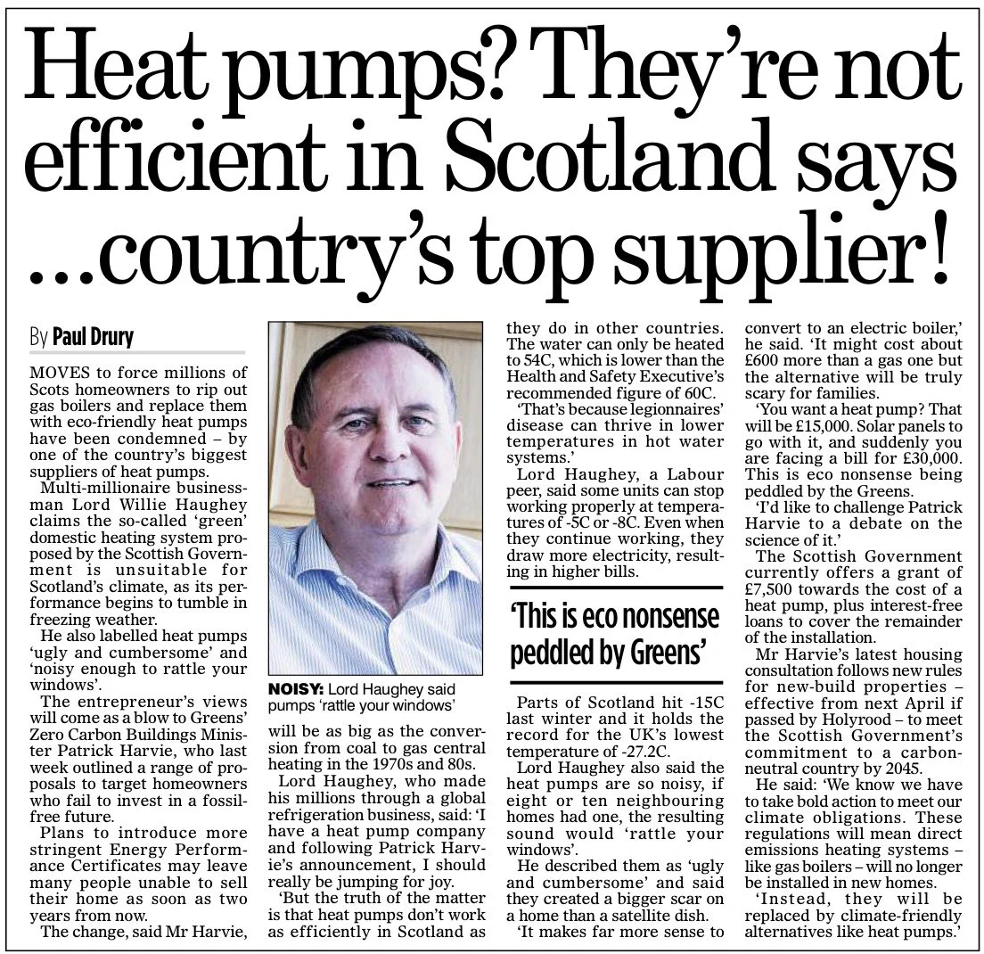 Glasgow based business-man Willie Haughey pours cold water on Patrick Harvie's plan to force Scots to replace gas boilers with noisy, expensive, inefficient heat pumps.