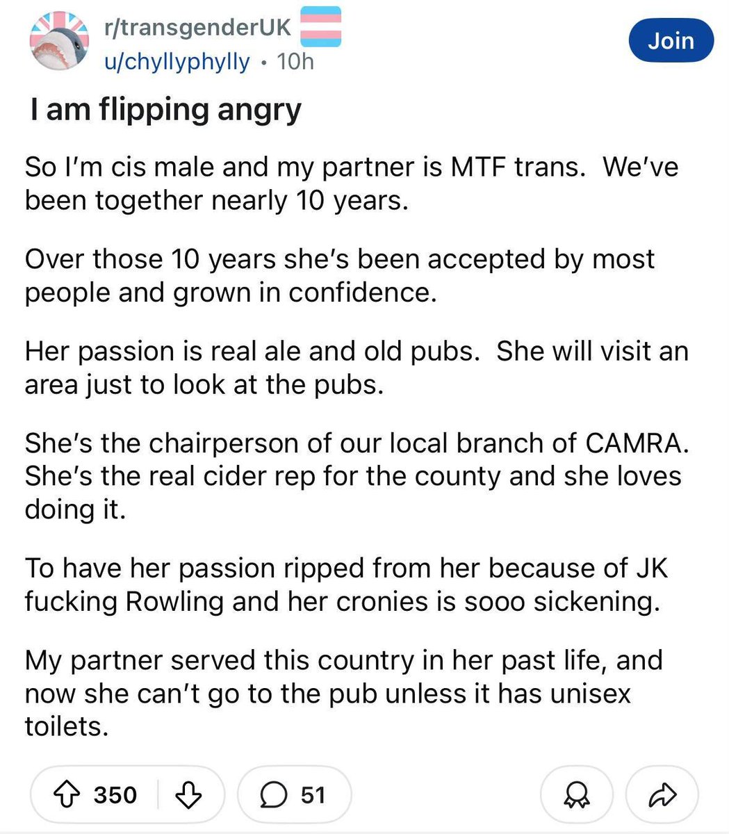 A CAMRA member must surely know that just as lager can’t self-ID as real ale - a man can’t magically become a woman.